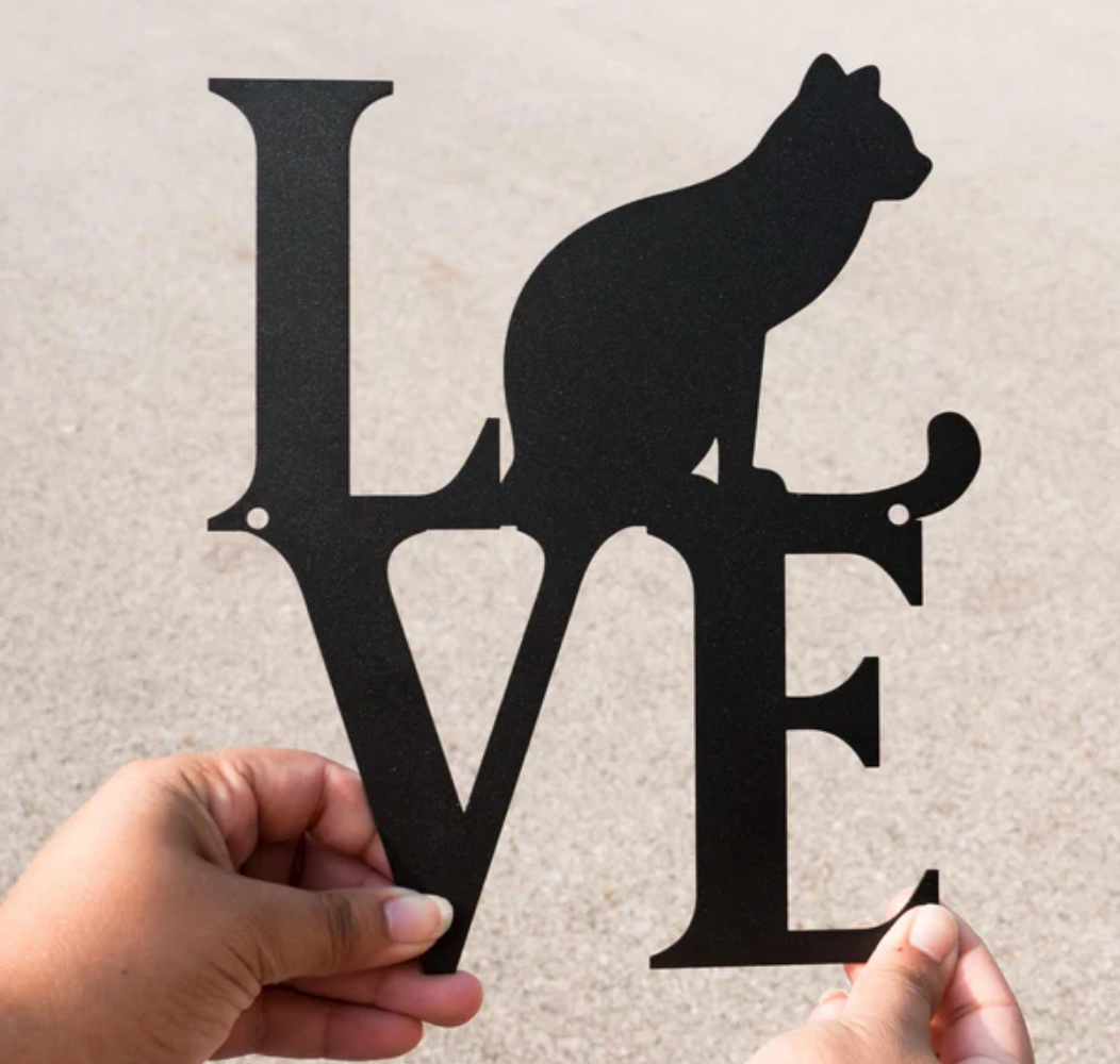 This handcrafted “Love” steel wall sign features a paw print as the “O” — a heartfelt tribute to the pets that make our lives whole.