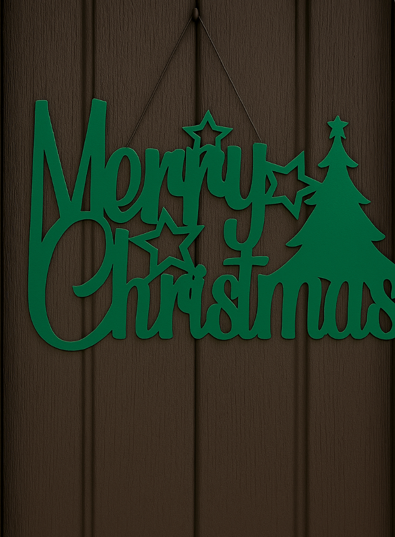“Merry Christmas” script with tree and star cutouts – full of seasonal spirit