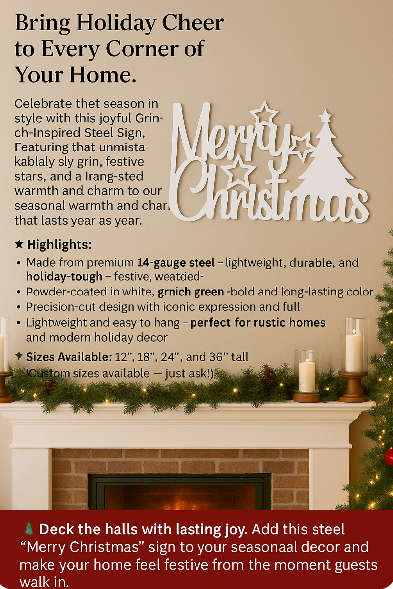 🎄 Deck the halls with lasting joy. Add this steel “Merry Christmas” sign to your seasonal decor and make your home feel festive from the moment guests walk in.